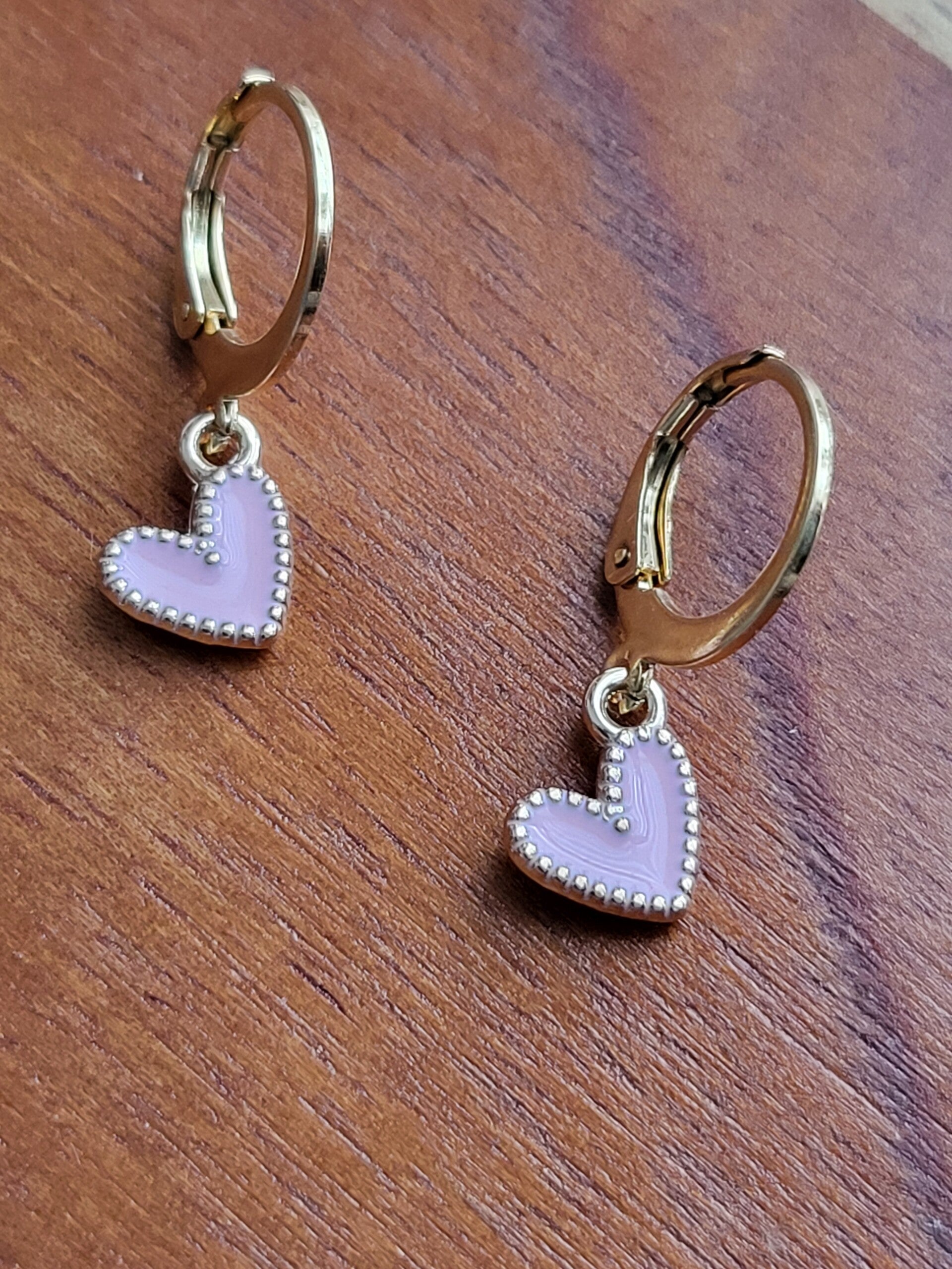 Oorbellen met bedel hartje roze/goud 2 stuks